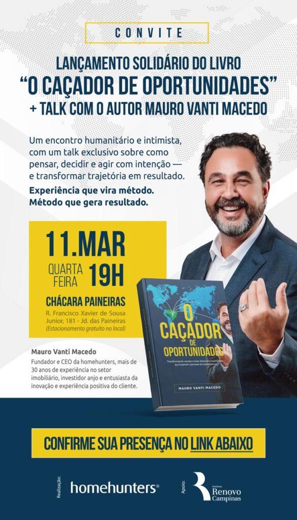 Lançamento Solidário: “O Caçador de Oportunidades” une literatura, mercado imobiliário e impacto social em Campinas
